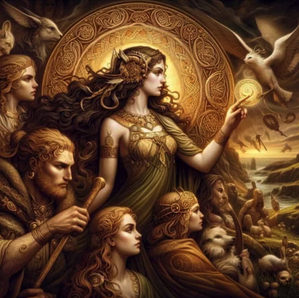 Dans le mythe irlandais (et gallois sous le nom de Dôn), elle est la déité primordiale, mère de toute vie. Comme plusieurs autres divinités autour du monde, on l’appelle Déesse aux Trois Visages (jeune, adulte et vieille) afin de la relier aux phases de la lune, aux différentes formes de vie, aux trois classes élémentaires de la société et aux trois aspects de la magie.